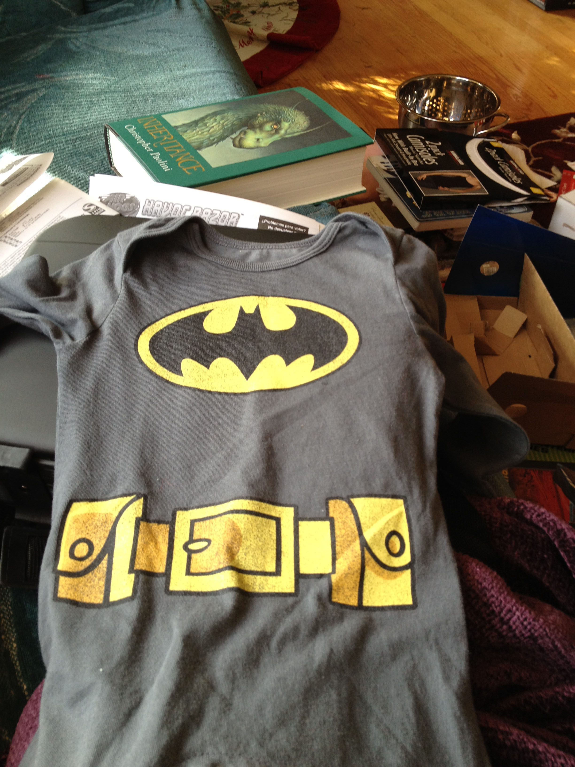 Well, I can safely say I am starting out this child’s wardrobe well. I’ve bought about 10 onsies, a super cute sweater, and of course the pair of baby converse that we used to tell our families. The Nugget also got some great Christmas presents too! It got some more sweet clothes, a few toys, and a wonderful handmade sweater that I just melted over when I got it. This week, we went to visit some family at Disneyland for a day, and we decided to get the Nugget it’s first stuffed animal. We settled on the most adorable Eyore toy that is soft and precious. I might have to take it from the Nugget though because it’s so soft, I love to sit on the couch and rub it’s ears while I watch TV. I hold it as a pray for the baby and sleep with it next to my pillow. It’s become my visual reminder of my Nugget soon-to-be, without being able to yet feel him or her moving around in there. Here’s a couple pics as to what we’ve got: